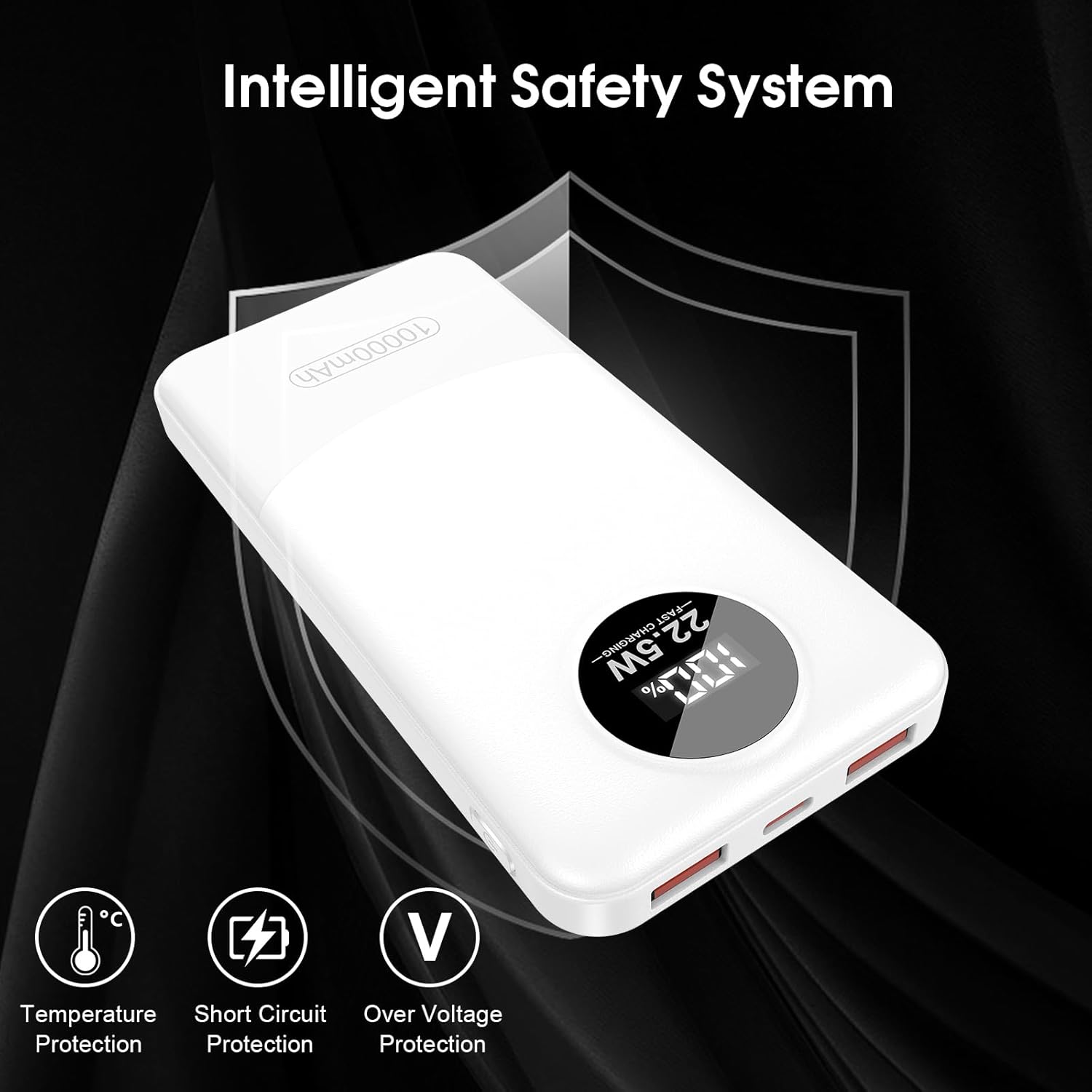 - Reliable Li-polymer Cell: A high-quality Li-polymer battery included in the power bank ensures safe charging and prevents issues such as over-voltage, over-charging, over-current, and short circuits. It will not become excessively hot or strain your phone's battery, providing a safe and ultra-long product lifespan