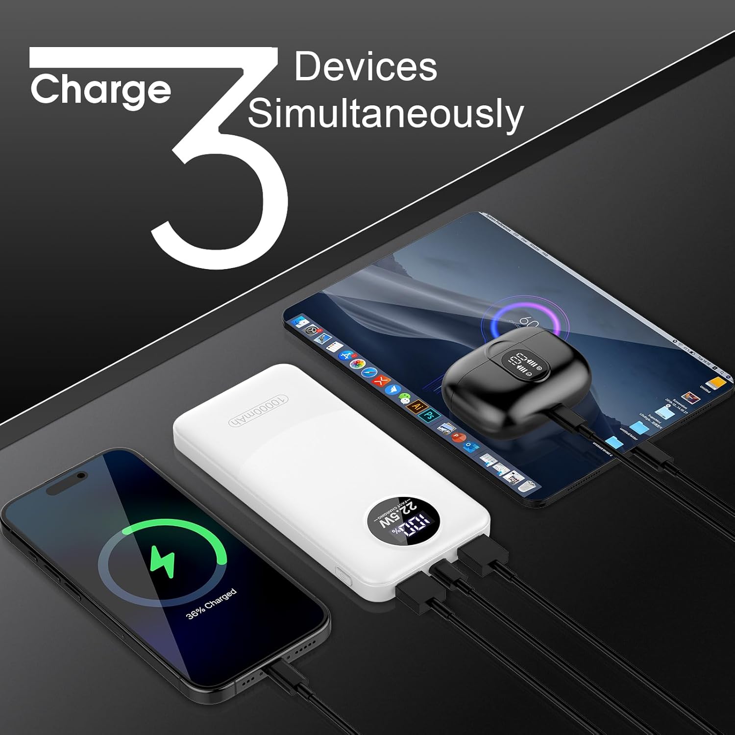 - Universal Compatibility & LED Indicator:Portable Charger is widely compatible with iPhone,HUAWEI, Pixel smartphone and smaller devices such as bluetooth earbuds, fitness tracker and so on, just connected to your device and the external battery would fix with different devices to get fast charging. In addition, with the clear smart LED digital power display, you no longer need to worry about running out of power